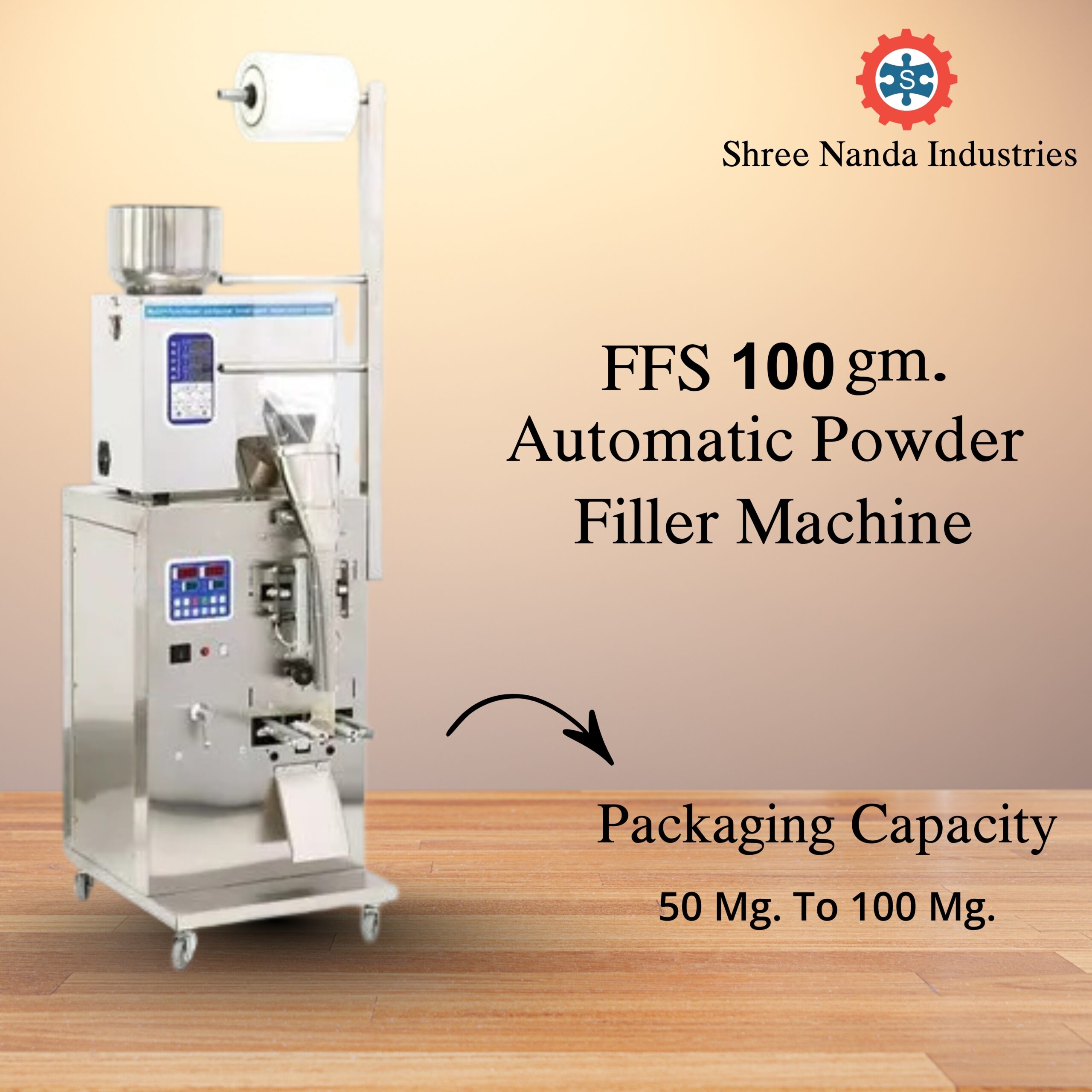 The FFS 100gm Automatic Powder Filler Machine is a compact and reliable solution for packaging small to medium quantities of powders with speed and precision. Designed with advanced automation, it ensures accurate filling while reducing product wastage, making it an ideal choice for startups and small industries.
