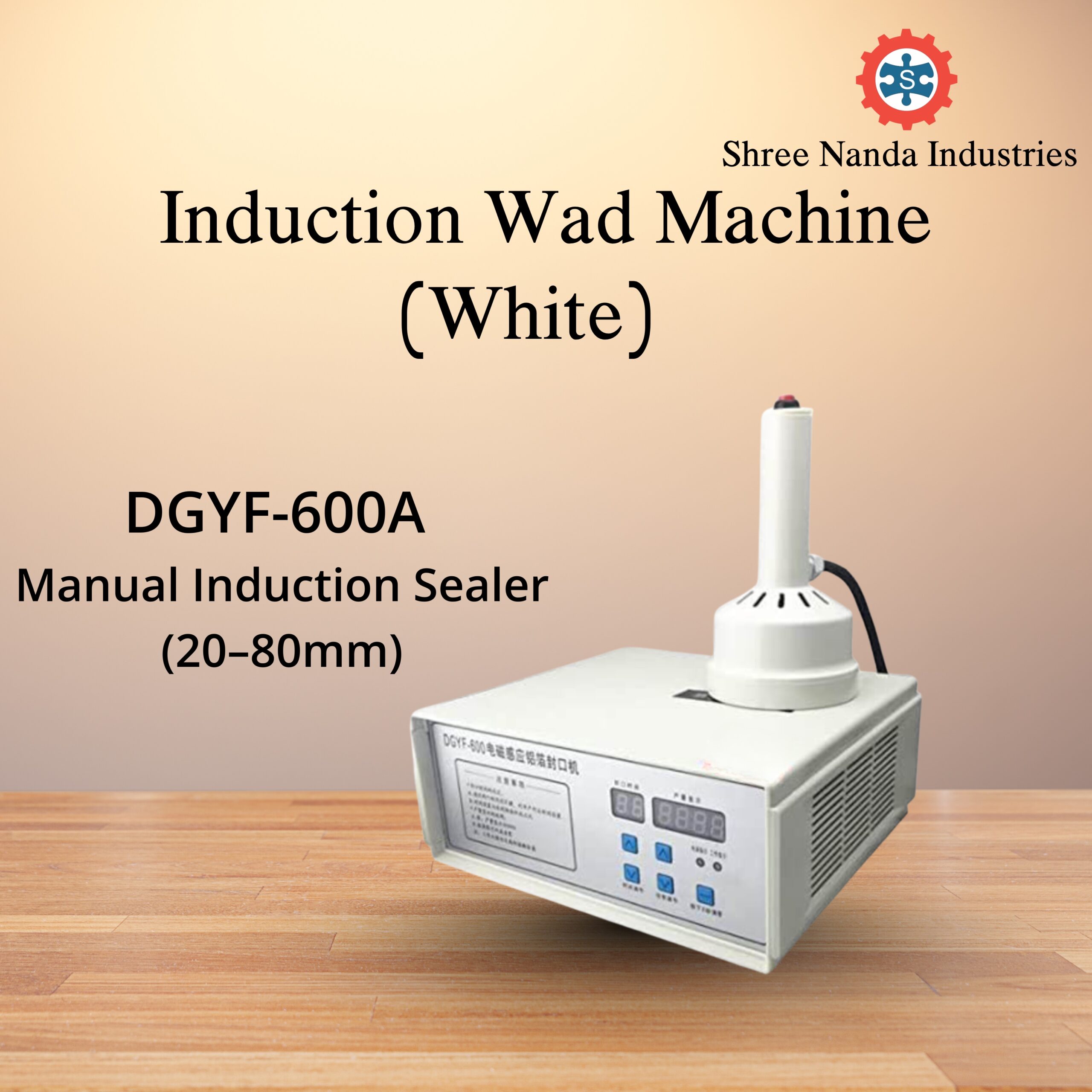 The DGYF-600A White Handy Induction Wad Machine is a compact and efficient manual induction sealer designed for sealing bottle caps with diameters ranging from 20mm to 80mm. It ensures strong, leak-proof, and tamper-evident seals, making it a reliable solution for packaging across multiple industries.